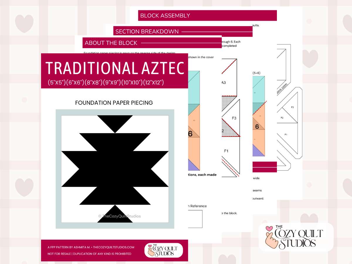 Bring bold geometric artistry to your next project with this striking Traditional Aztec Quilt Pattern — a showstopping FPP Quilt Block Pattern rooted in timeless Southwestern design.
