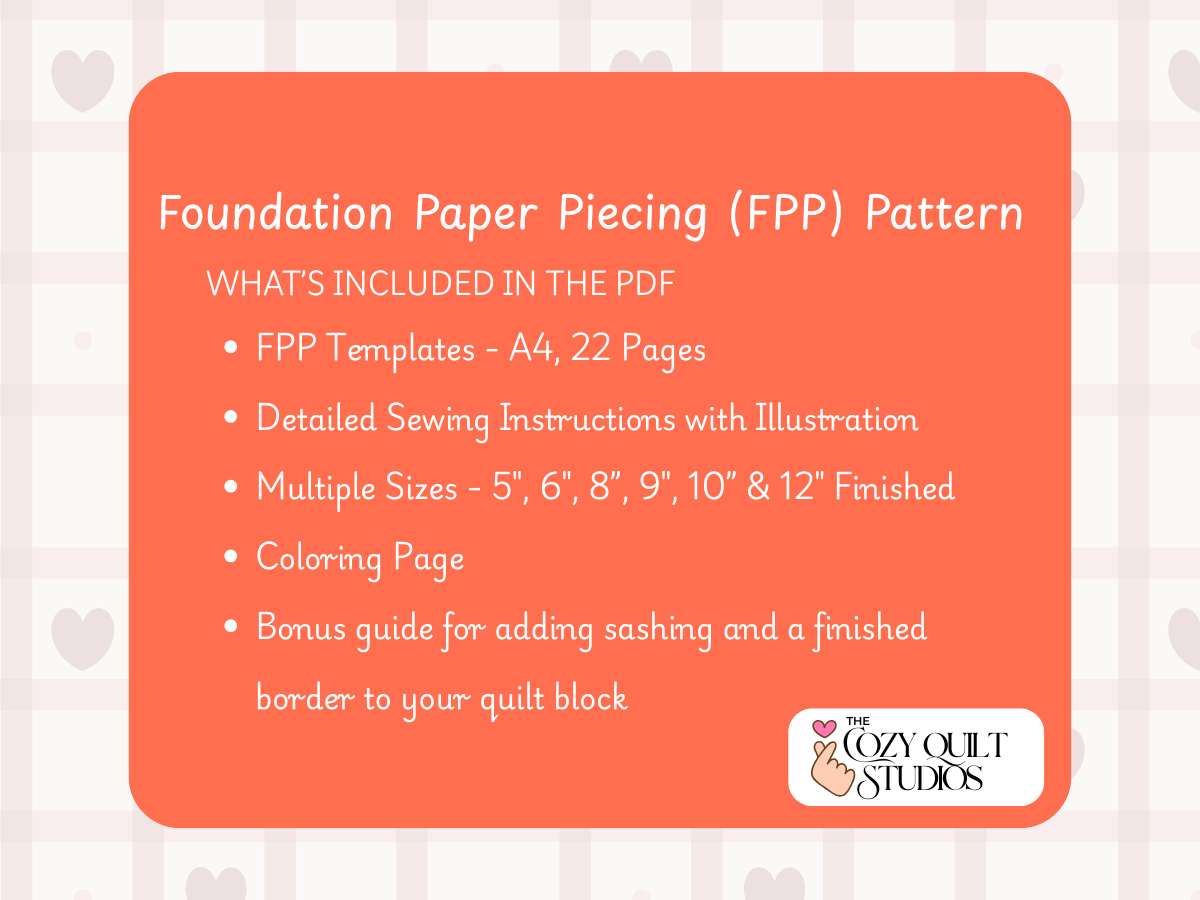 - Format: Digital quilt block FPP pattern PDF (instant download, no physical item shipped).